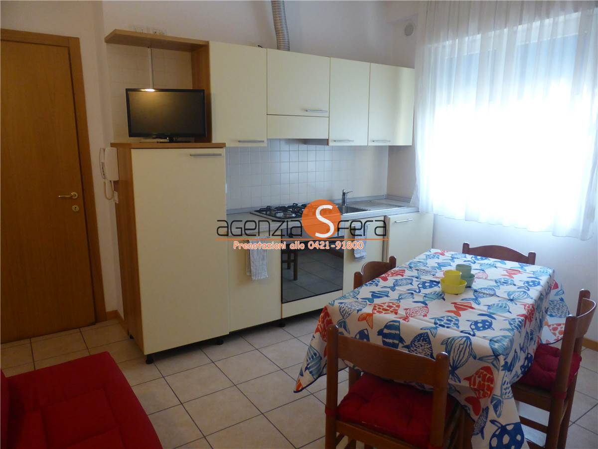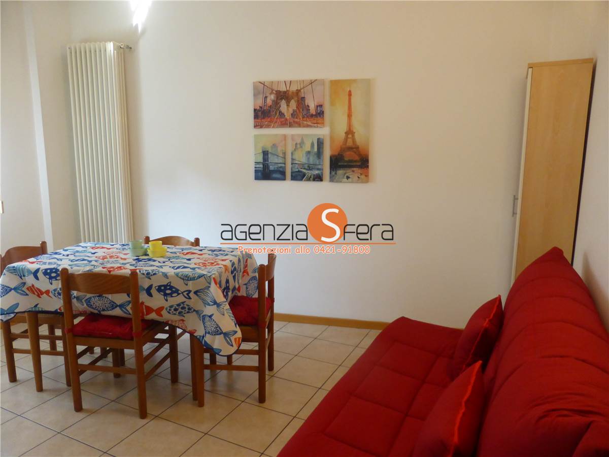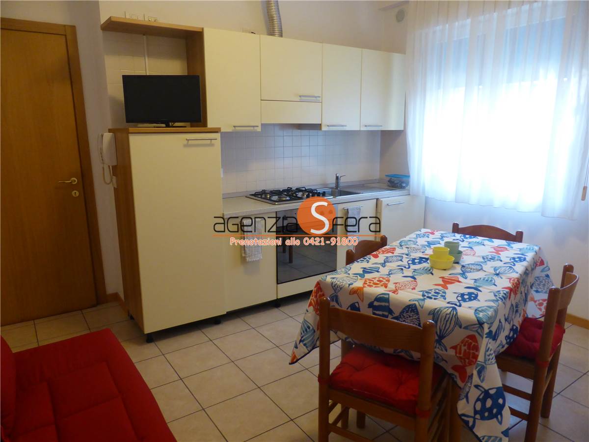 AFFITTASI PER LA STAGIONE ESTIVA bilocali al piano rialzato in piazza Trieste a soli 50 metri dalla spiaggia. Tutti gli appartamenti sono composti da ingresso con portoncino blindato, soggiorno con angolo cottura e divano, camera matrimoniale con letto a castello e bagno finestrato. L'appartamento è dotato di aria condizionata , lavatrice, lavastoviglie, forno, tv, WI FI INCLUSI NEL PREZZO. NO POSTO SPIAGGIA. NON INCLUSO POSTO AUTO. SPESE A PARTE : CONSUMI LUCE E GAS E PULIZIA FINALE .Per info e disponibilità 0421.91800 - sfera@agenziasfera.it. VISITE APPARTAMENTO SOLO SU PRENOTAZIONE.