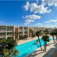 L’immobile è composto da: luminoso soggiorno con angolo cottura; camera matrimoniale; seconda camera con tre letti singoli, ideale per famiglie o ospiti; bagno finestrato con moderna doccia walk-in; terrazza con vista piscina, perfetta per pranzi e momenti di relax all’aperto.